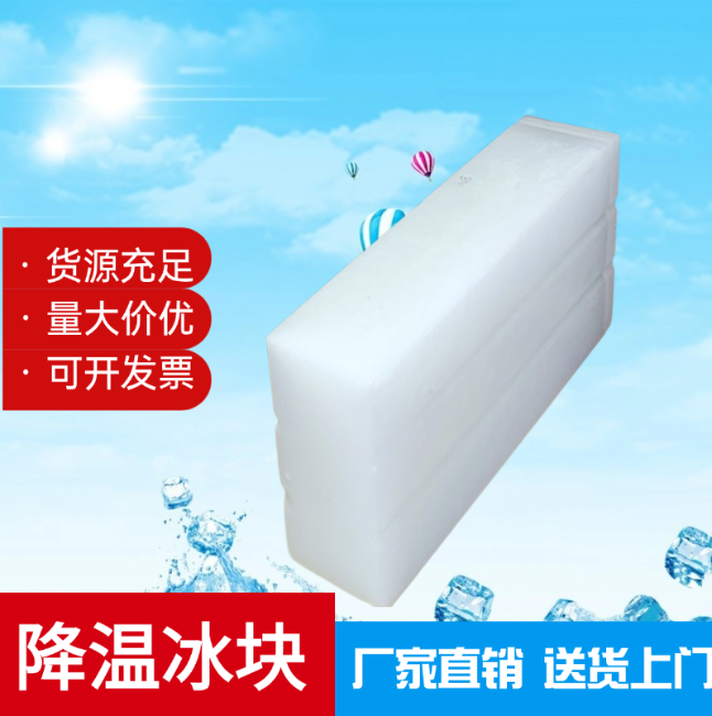降温冰块又称工业冰块、大冰块、条冰、冰砖等,冰是用纯自来水冷冻而成,温度在零下20度左右。大冰块使用范围广泛在海鲜食品、餐饮、卫生、工业、中大量应用。冰块每条有100斤、150斤、200斤规格。